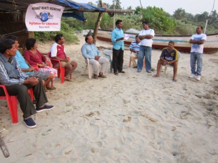 Fishermen attending the meeting. It was decided to carry on the agitation further as the violations of fishing rights in Zuari river has continued.
